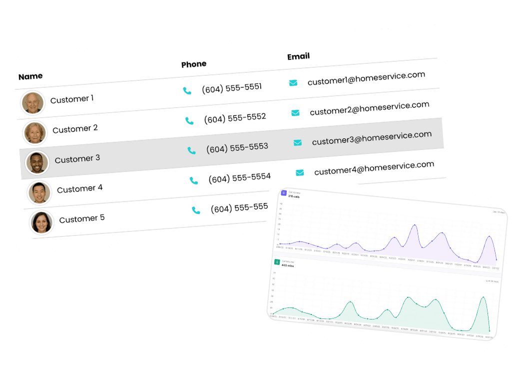 Track calls and leads instantly with a simple, live dashboard.